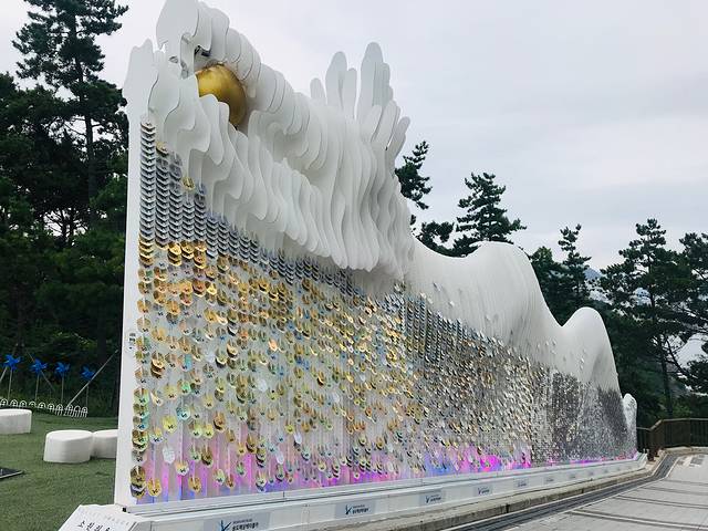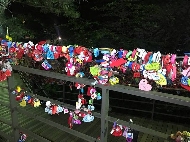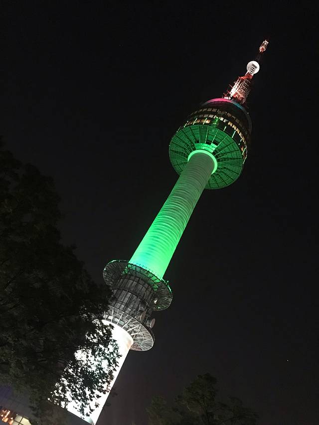 N首尔塔也叫南山塔,位于南山之巅,高236.7米,是首尔的一大地标。塔下,有一大片同心锁墙,是星你的取景地,从这里可以俯瞰首尔风光。这里不仅是韩国人约会的天堂,也是外国游客的打卡地。夜晚塔身灯光颜色各异,随机变换,比白天更具魅力。但是对于我们看过中央电视塔、东方明珠塔和广州小蛮腰的人来说,首尔塔还是不够壮观了,甚至不如在酒店里看到的有感觉。但是旅行不就是这样吗?总要亲眼看一看自己没有见过的,然后才会有经历、有比较。