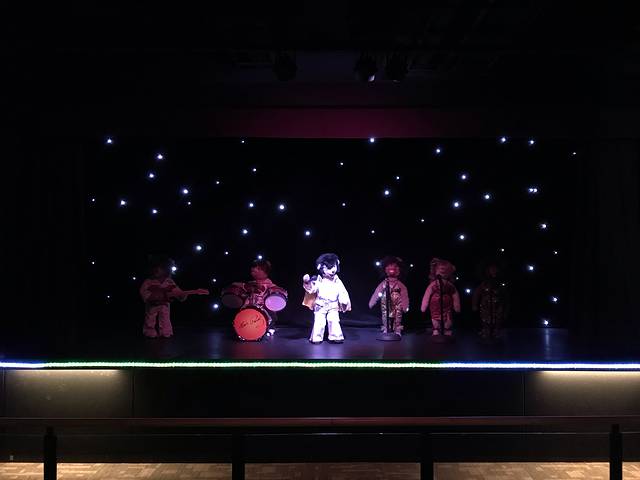 泰迪熊剧场里是模拟猫王的演出,有相应的演出时间。一层是售卖纪念品的地方。从一层可以走到室外,有一个超大的建筑泰迪熊。公园不大绿化得不错,有一些熊的雕像,或在烧烤或是钓鱼。