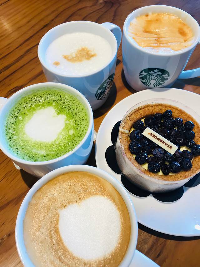 图中圆圆的甜品,我叫它蓝莓芝士塔,没有在北京的星巴巴看到过。外边儿类似饼干底座,里边儿是芝士,特别好吃。