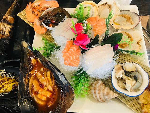 买帝王蟹或雪蟹即可获赠海鲜拼盘,这么大一盘,非常新鲜好吃😋