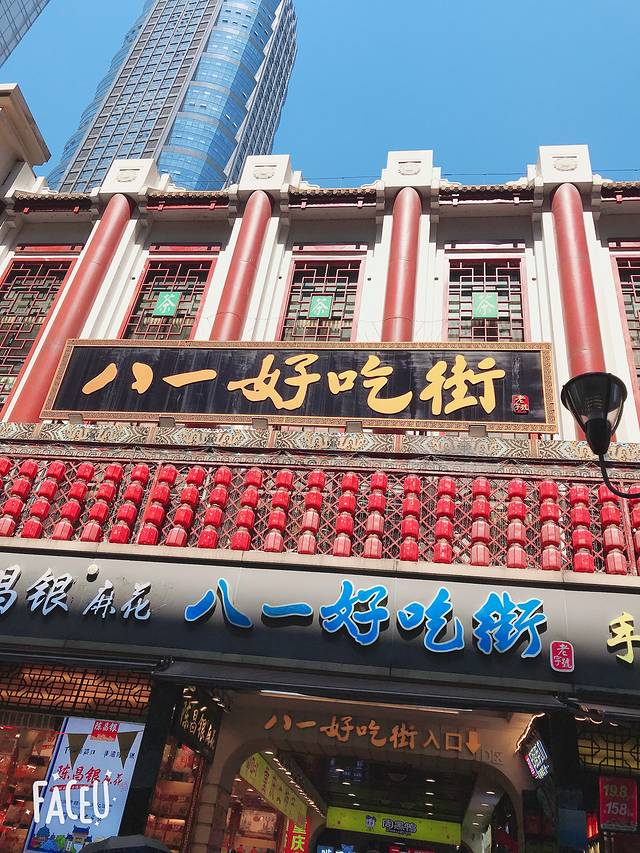 这个正对面就是解放碑好吃街,真心一般般,算了算了吧。这么热天,走这么远真心不值得
