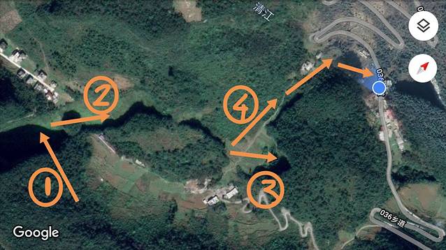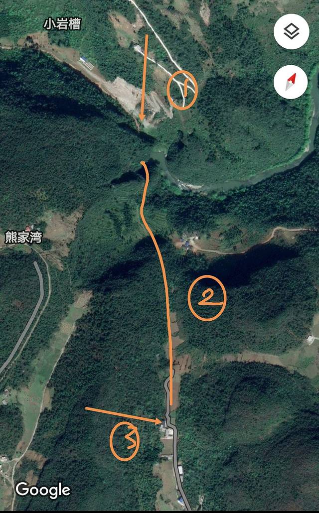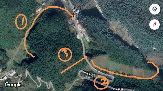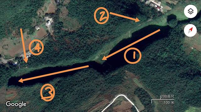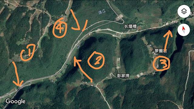 曲线2是我从卫星地图上识别的路线,因为没有走这一段,还请大家参照其他攻略