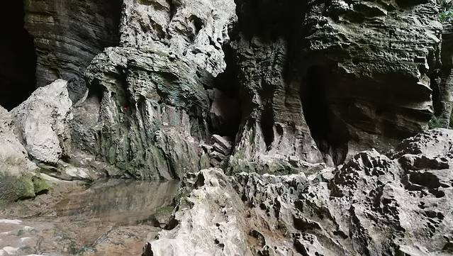 这里又要说做攻略的一个失误,就是没有提前了解一下这个银河洞。在洞口你可以听到巨大的流水声,很想进去看看,但是洞又深又黑,花了大概15分钟,勉强往里面爬了100米,就是一个静止的水潭,过不去了。后来跟客栈附近的山民聊天,才知道这个银河洞其实是可以进去看到地下河的,也是可以走出去的,不过这都只能是在冬天水位退下去的时候。原来这里的山民都不敢进银河洞,直到后来有专业探洞的人在里面走了几个小时走出去以后,才开始进洞。后来山民门又发现水潭里面鱼超级多,都不用钓,直接拿三叉戟叉就行,这里就火了。