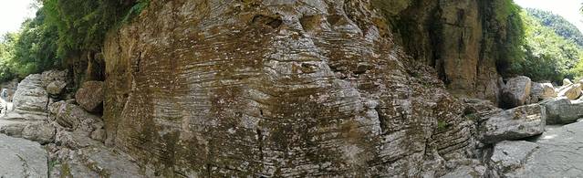 多讲一下红丝带,这都是前人留下的路标,整个清江古河床徒步路线上都是,对于防止迷路非常重要。再次感谢一下户外运动的这些协会和前辈们。再多讲一下来的时机,如果下雨天不管多小的雨,都不建议过来。河床要爬的石头上有很多青苔,干燥的时候可以起到防滑得作用,随便踩,可如果是湿的就会非常滑,这里都是岩石,没有缓冲,万一滑一下磕到哪里受伤,要走出去可就困难了。