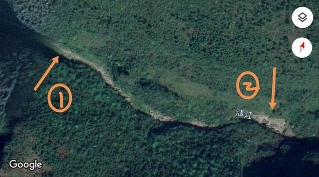 箭头2所指的位置是古河床的终点,左侧小路上山