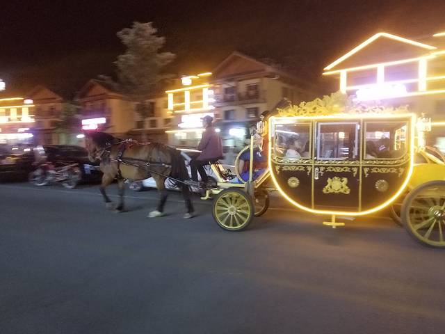 马拉车看着我觉得非常的心痛,司机说认识这个拉马车的一晚上是4000块,多了还不要,一个人20块转一圈这一只马真的非常的高大,围着镇子走小半圈,然后放下来。一车子拉10多个人。我觉得这个嘛,真的是太厉害了,但是我拒绝动物表演。