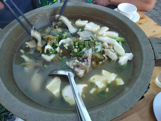 这个鱼是按斤卖的,88块钱一斤,在这里就是吃鱼,都是酸菜鱼吃了三天,第1天吃了两斤,后一天三斤,再后一天三斤,但是这里和之后吃的比起来简直是便宜。在这里花的不是人民币花的,是越南盾钱不值钱。
