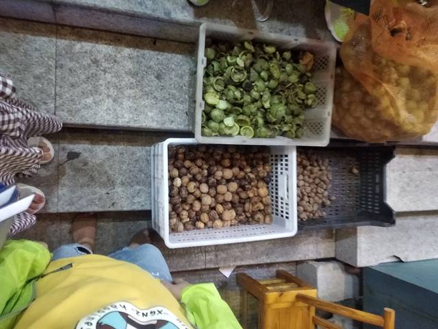 大九湖的阵子非常的繁华。而且晚上也很凉快,但是不是说是那种凉快,就是穿的短袖,外面套一个防晒服就可以了。这个是吃核桃,这里卖25,后来在新山买,13块钱一斤。