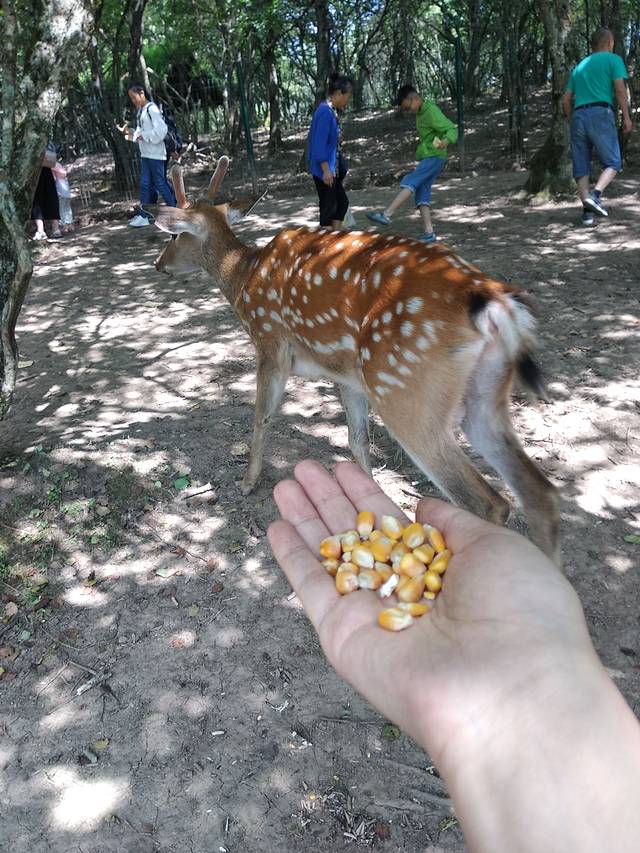 鹿苑是一个收费的景区,10块钱一个人,据说是买饲料,但是他出的单子上面是三块钱,但是你只有买了饲料一个人买才能进去。只要是人门票10块钱。里面是玉米,问题是路不吃呀,他们天天都吃玉米他们才不吃,所以我们就给他找树叶吃,看了之后我觉得非常的可怜,他们的鹿茸都被锯掉了。但是非常的可爱,也不是什么怕人也没有想象中的那么臭,只是地上都是屎。