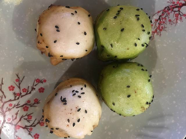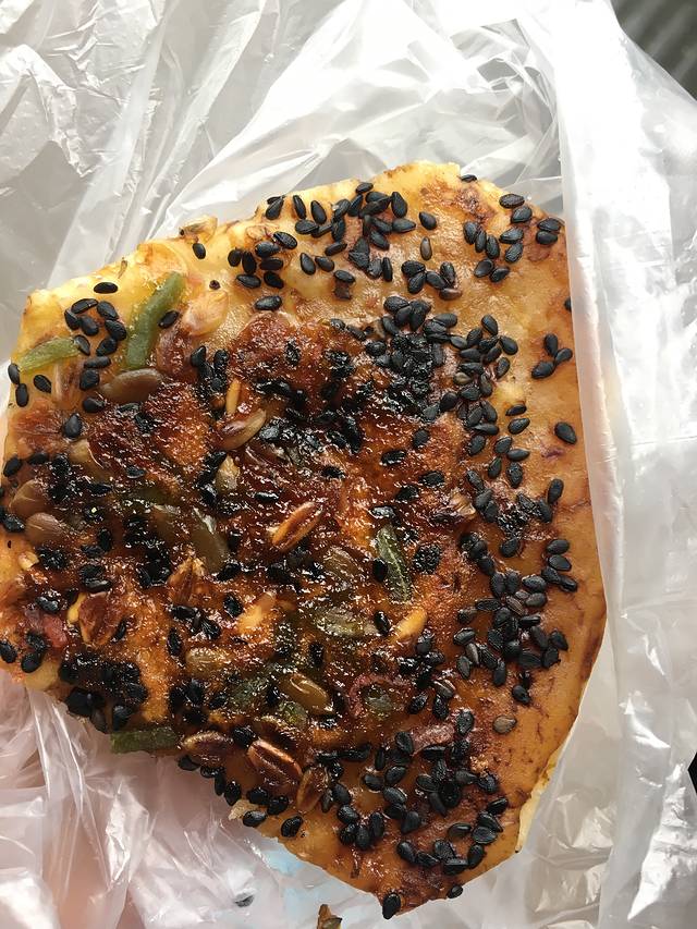 在拙政园门口买了一块桂花糕吃,有一点点馊的味道,味道怪怪的