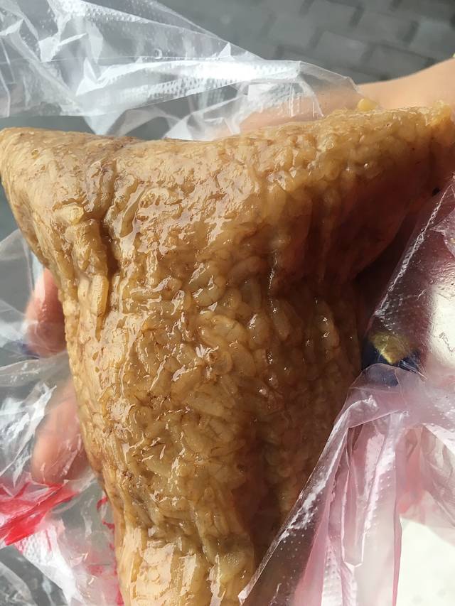 路上买了一个蛋黄五花肉粽子,粽子的糯米有一点点甜,这可能是江南的风味,不过吃了肉粽内心是很满足的。