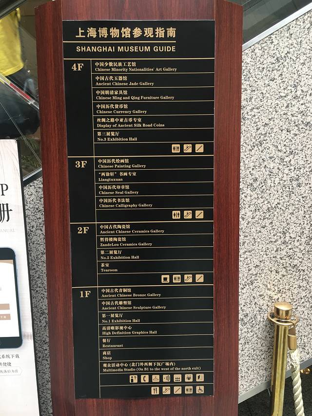 上海博物馆导览图,我一看这个导览图心中就有疑问怎么没有讲历史的展馆呢,后来听讲解员说才知道上海博物馆其实是艺术博物馆,还有个历史博物馆就在上海博物馆的旁边。