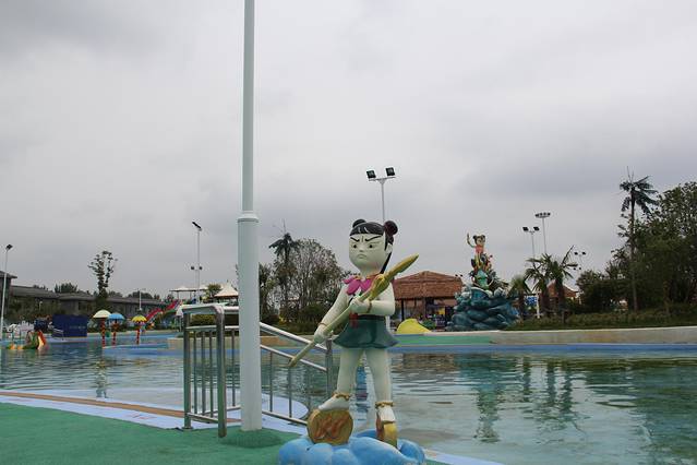 3、乐园的特色很鲜明。其他水乐园之前也去过,没有赋予什么文化内涵。哪吒水乐园因为是中国封神之都大型封神主题文化园区的子项目,所以融入了哪吒闹海的元素,在园区的布景和玩水设施的命名上,都有体现,这一点,给人的感觉还是很新奇的;