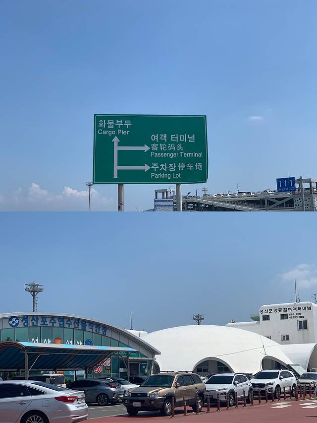 我们需要坐车去城山港口(성산항)坐船