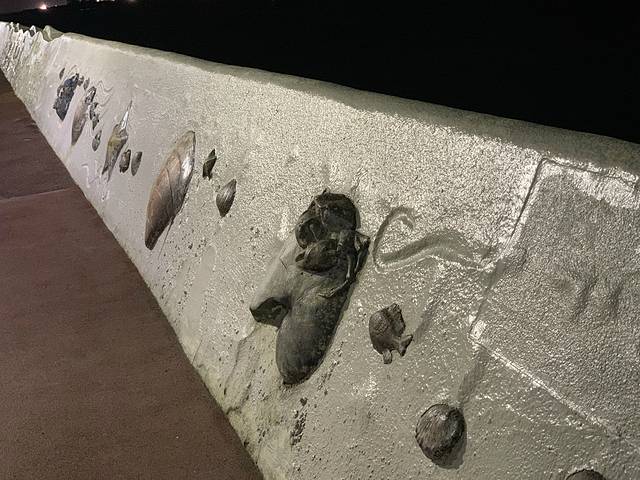 海边的石阶长满了青苔,差点没有滑倒