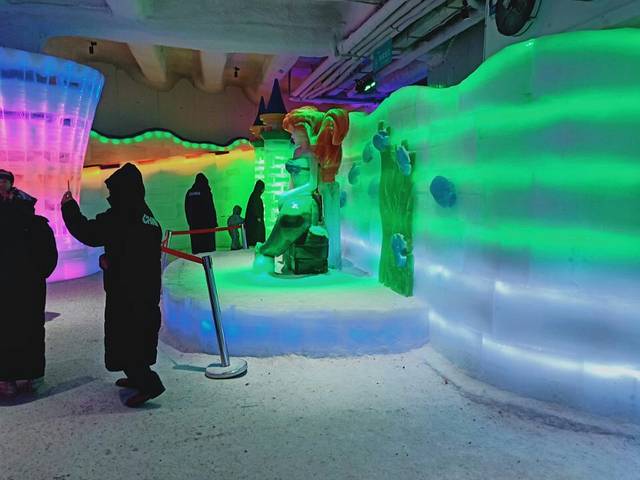 冰雪乐园顾名思义就是冰雪世界,进去之前工作人员会让你穿上大大的棉服,换上一双棉鞋,在门口的时候我们感觉到了一阵阵凉意,进去里面一丝丝刺骨的凉意扑面而来,刚进去感觉呼吸都很困难,不过过一会就好了,那种感觉就和在冰箱的感觉是一毛一样。里面也很漂亮,还有可以滑雪的,小朋友们的最爱。