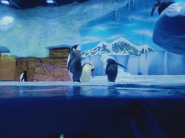 企鹅馆里,可爱萌动的企鹅,蔚蓝的海水与白色的冰山交相辉映,帝企鹅一展王者风范,王企鹅、巴布亚企鹅自在畅游,还有悄悄潜水的企鹅,还有目光呆滞一动不动的企鹅,还有快乐玩耍自由自在的企鹅,尽情的探寻南极的冰雪奇观,真是神秘而美好。本来想去旁边看看北极熊的,但是不知道为什么什么都看不见,真的是有点可惜了。