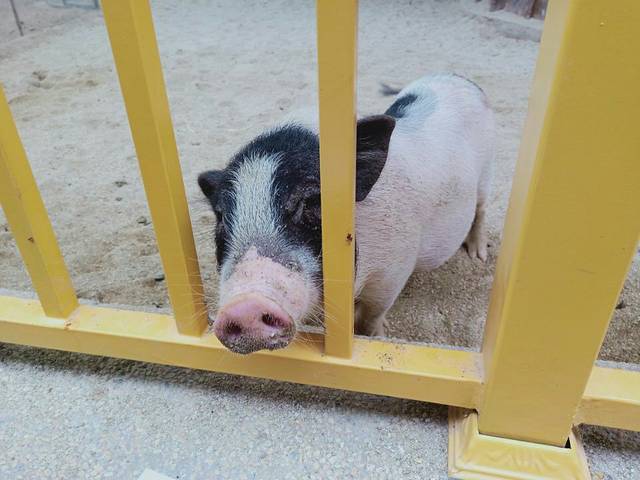 去冰雪乐园的路上看了很多的小动物,最喜欢的还是这个猪,感觉很可爱,我们一唤它就过来了。