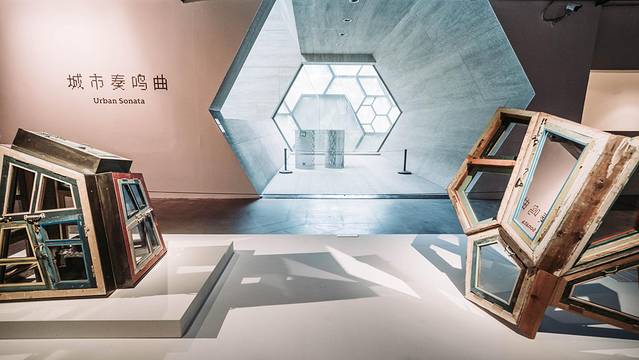作品用木制旧窗户包裹着蜂窝煤堆——《城市奏鸣曲》