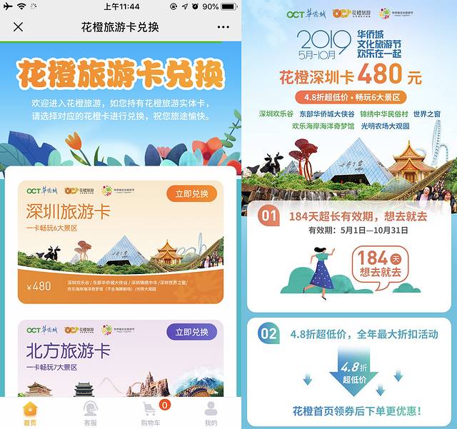 在门口看见有微信扫码即可快速入园的方法,于是扫二维码得知是华侨城的花橙旅游卡。