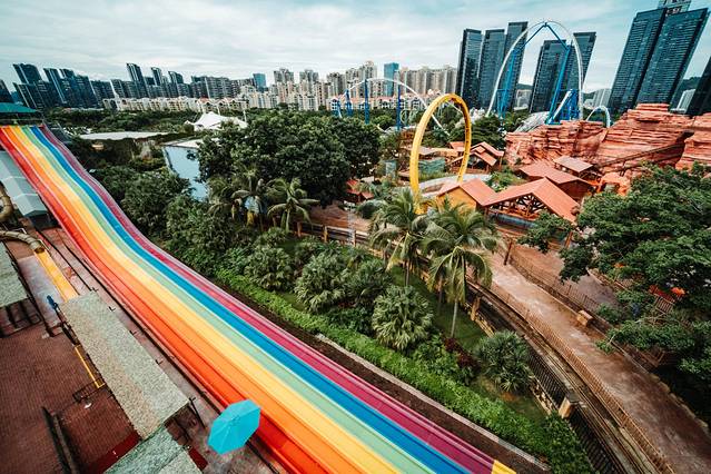 个人推荐园区游玩线路:【冒险山-太空梭】→【魔幻城堡-冰雪世界】→【西部矿镇】→【雪域雄鹰】→【香格里拉-雪山飞龙】→【追风者】→【彩云之翼】→【飓风湾-激流勇进】→【玛雅水上乐园】