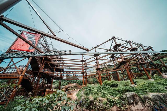 今年的一大亮点是从7月开始,西部矿镇可以说是大换血了,陆续会有超多新项目更新,比如这个【金矿攀爬】,可惜还在试运营,没能玩上,但是这个将近90度的速降,真是把我看呆了!下次来一定要体验一把!