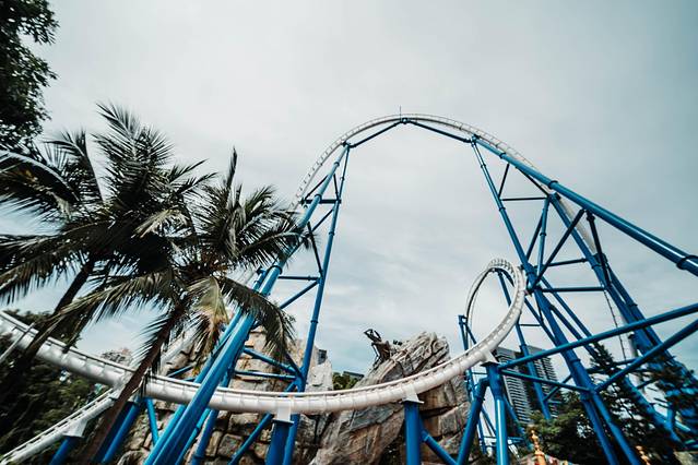 雪域雄鹰,深圳欢乐谷的招牌过山车,有选择疑难的盆友可以坚定的先排这个项目的队伍,不会让你失望的。