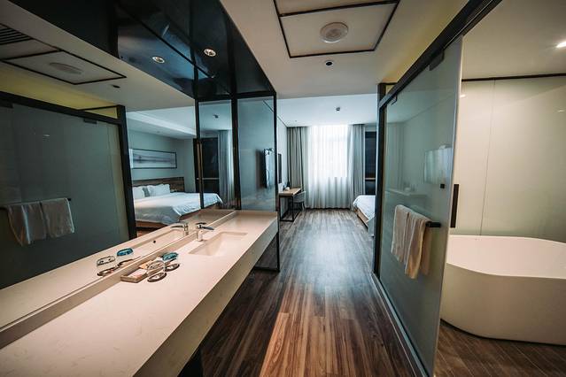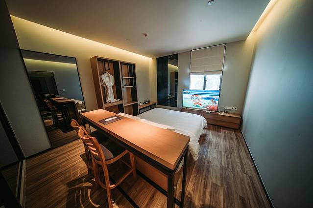 房间有wifi且速度很快,有配烧水壶,衣架和拖鞋;浴室有配备浴袍,浴巾;吹风机,洗漱用品,洗头液和沐浴液,干净无异味,