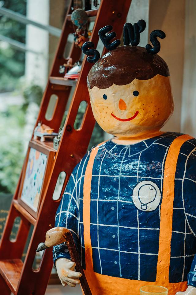 阳台区域摆放着他们家的镇店雕塑【SENS】,这其实还是一个儿童绘画小学堂。
