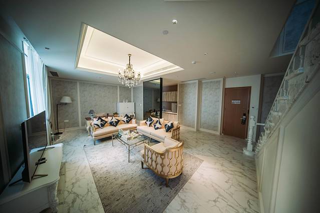 最顶楼是奢华的复式间,很家庭住比较合适。P.S浴室面积超大!