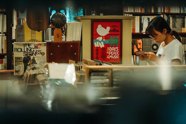 推门进去可以发现书店分三个区域,书店区,唱片区和咖啡厅区。