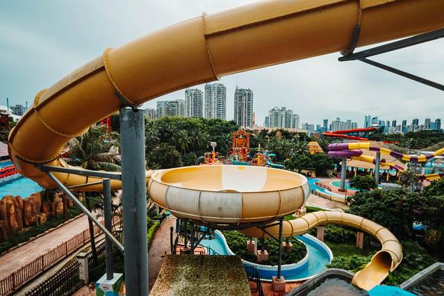 玛雅水公园是深圳市内唯一的水上主题乐园。早上的太阳比较毒辣,因此如果晚上买夜场票进园玩水会舒服得多!值得一提的是,玛雅水公园全年的开放时间是五一至国庆期间,正好和花橙卡的活动时间是一样的。