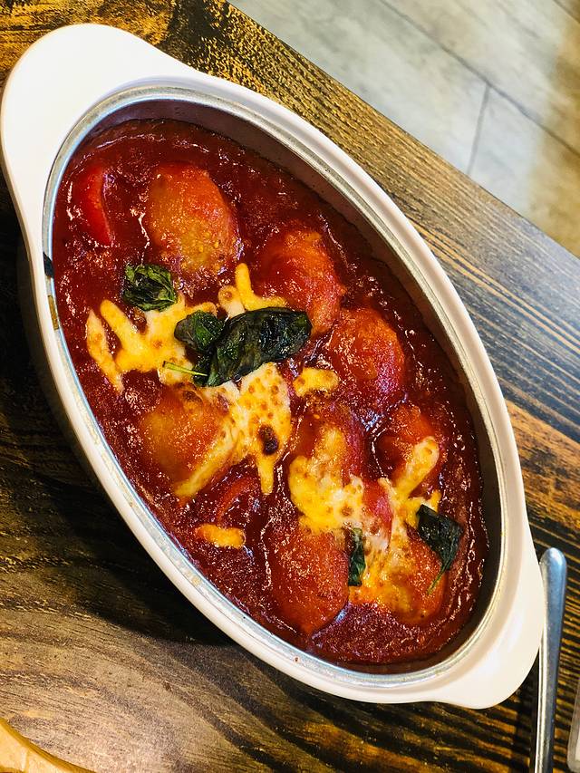 意式肉丸,这个比较一般,本以为肉丸是纯肉馅搅打的,但是端上来一吃是那种速食的肉丸,虽然也比较有弹性,但个人感觉意式肉丸还是那种看得到肉馅做出来的比较正宗吧。番茄🍅酱和焗饭的底料一致,但是味道有些太甜了。无下次的那种意式肉丸... 下次试试蟹腿沙拉和烤鸡翅。