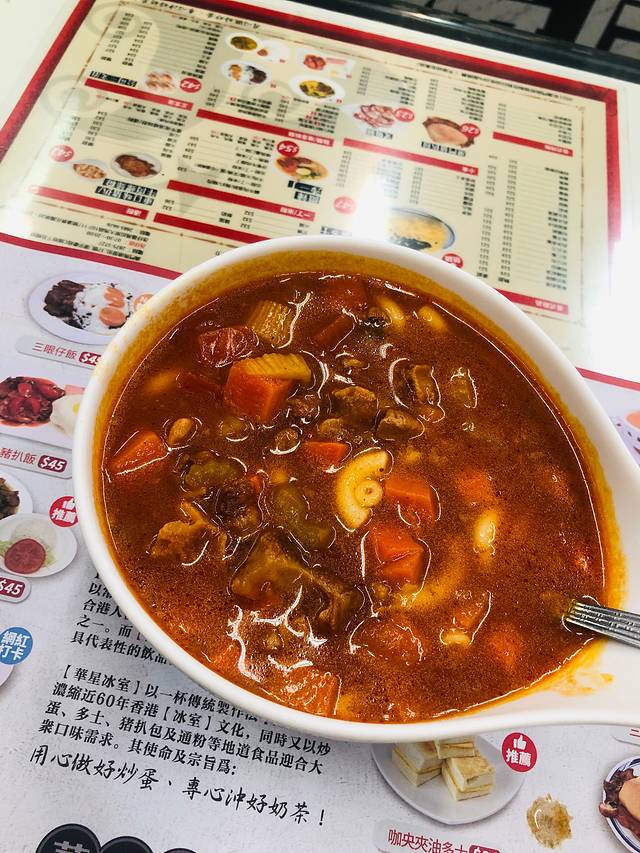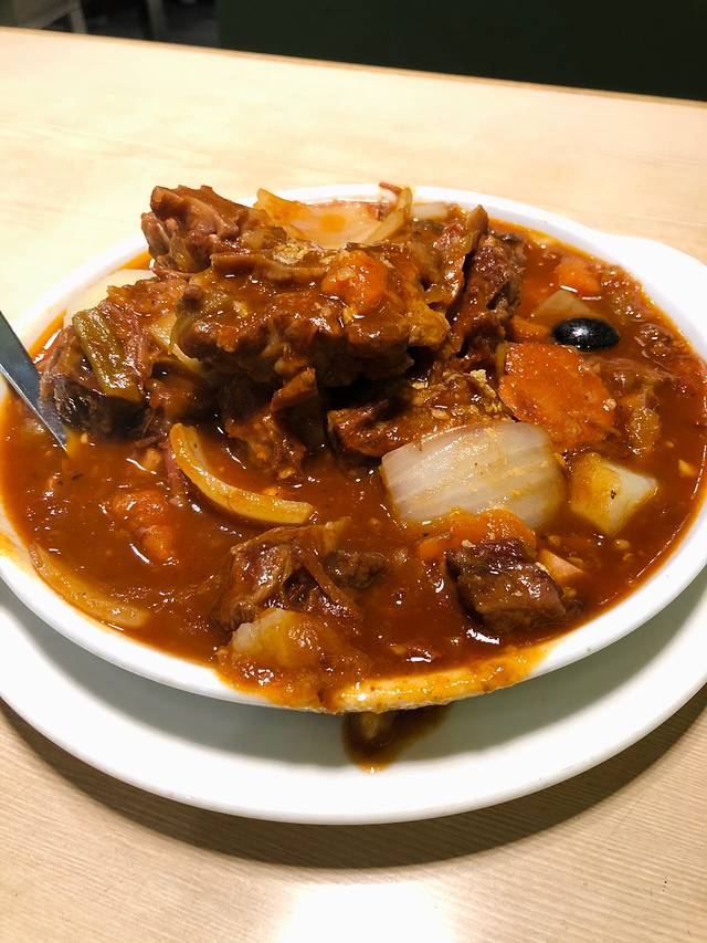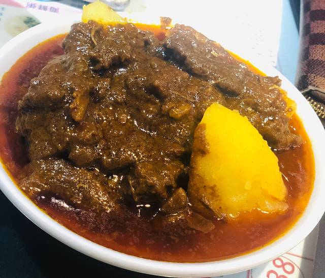 咖喱牛腩薯仔,很多人都说辣,我这个吃辣星人,吃到最后感到有一点点辣,朋友吃到最后说有点太辣了,这个辣度对广东人和澳门人来说应该算是比较辣了吧~一份有牛筋、牛肉,但整体分量不太多,咖喱味挺浓,但味道和平常经常吃的超市买的黄咖喱又不太一样,咖喱上面一层油有点大,整体来说可以一试~一个人的话 也可以选牛腩面/饭这类的,咖喱牛腩的味道是一样的,反正我们点的一份咖喱牛腩薯仔,感觉里面牛肉也没有很多~~