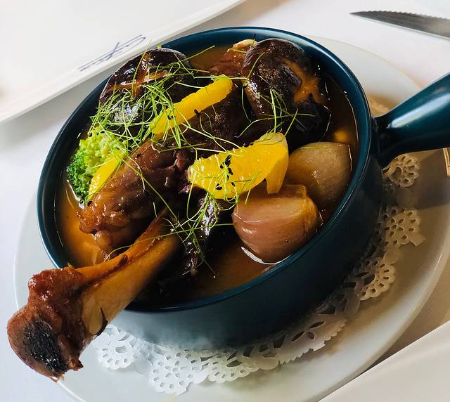 红酒烩羊腿🍷 羊肉的肉质特别特别好,很新鲜,搭配橙汁会解腻不错。汁底非常非常非常的细腻,感觉是土豆泥+芝士的混合(我猜的)汁是那种可以流下来但入口又有质感厚重的感觉。能吃出酱汁的高水准👍