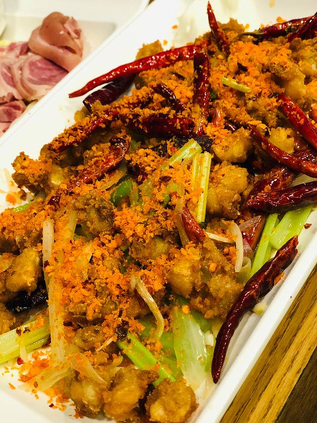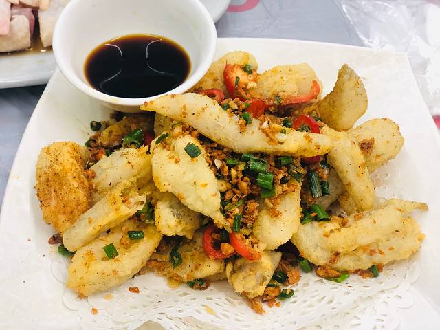 椒盐九肚鱼 外皮炸的很酥脆 一口咬下去里面的九肚鱼肉质软滑~ 超级好吃,算是港澳及广东这边的特色菜吧 基本吃海鲜的店都会有~