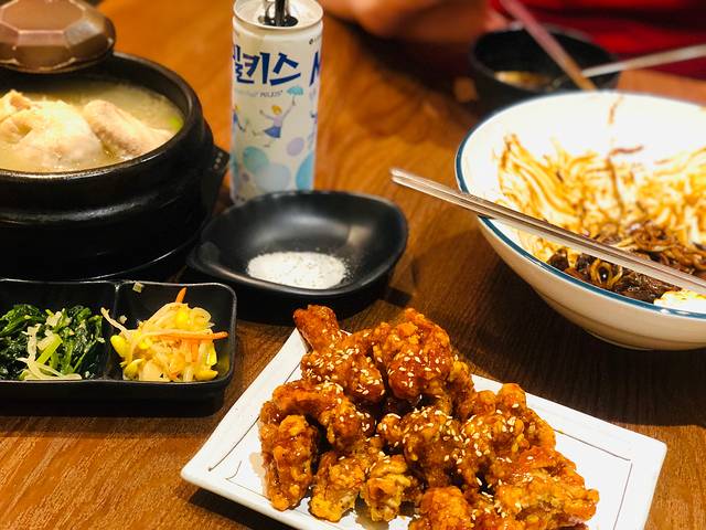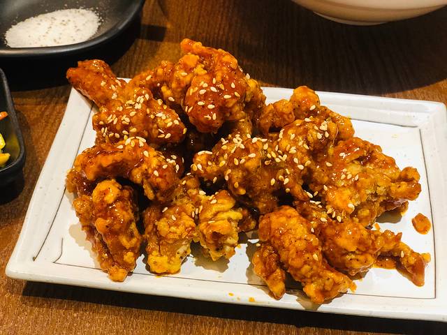 虽然是韩国开过来的店,但是不同于大多数韩国炸鸡店,他家的鸡是“烤”的,肉质特别嫩,端上来趁热吃,一口咬下去,汁水会流出来哦~~外皮也很焦