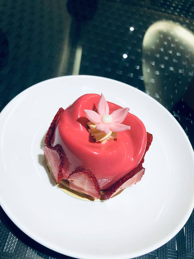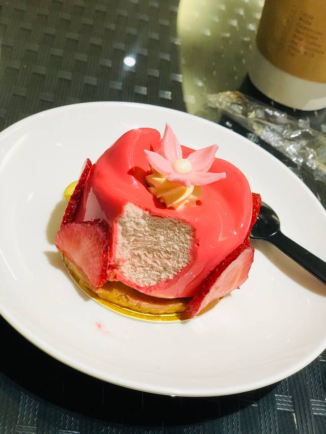 里面夹了覆盆子馅儿 如口微酸,外面是慕斯口感~
