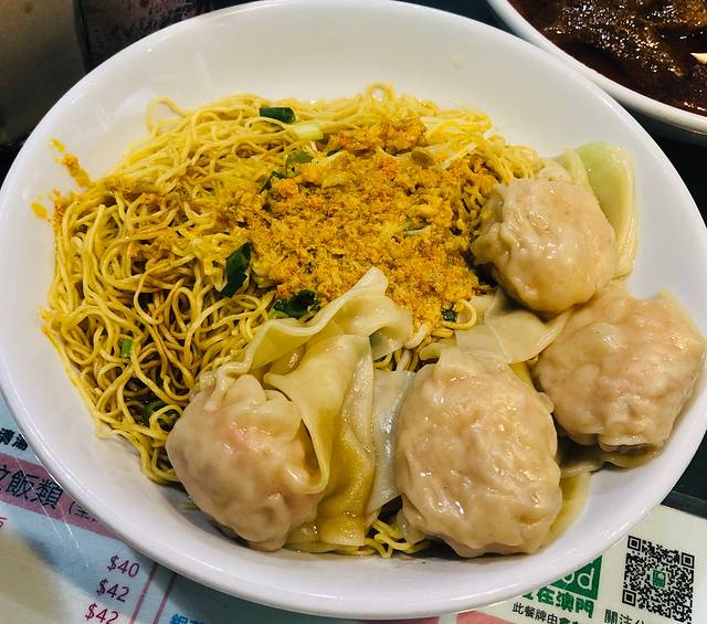 蟹黄云吞捞面,云吞里面有鲜虾,算是无功无过的云吞吧~蟹黄捞面还是挺好吃的,我吃的时候正是十月初,大蟹黄正肥美的时候,所以面上的蟹黄特别香,老板~可以给我来一份蟹黄捞面,不要捞面嘛 哈哈哈~~面很细 但是有点柴、干。整体上还是推荐一试哒