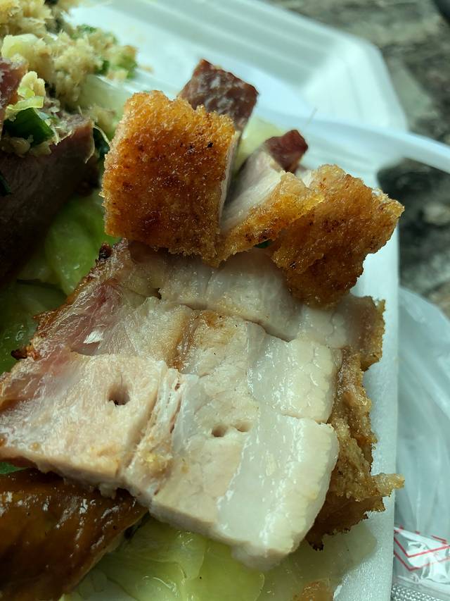 五花肉肥瘦相间,最上层的皮烧的焦香酥脆,一口咬下去瘦肉和脂肪混合,在口中爆出油汁,中和的恰到好处,不会过腻或者过柴,重点是外卖过来表皮也能保持酥脆不会有水汽的感觉,推荐一试呦~