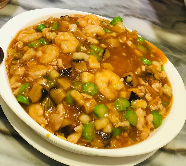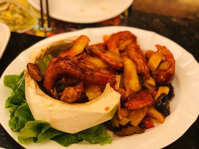 海鲜量足 肉质也比较新鲜,菜里面都浸着辣味 其实海鲜倒是没有怎么辣