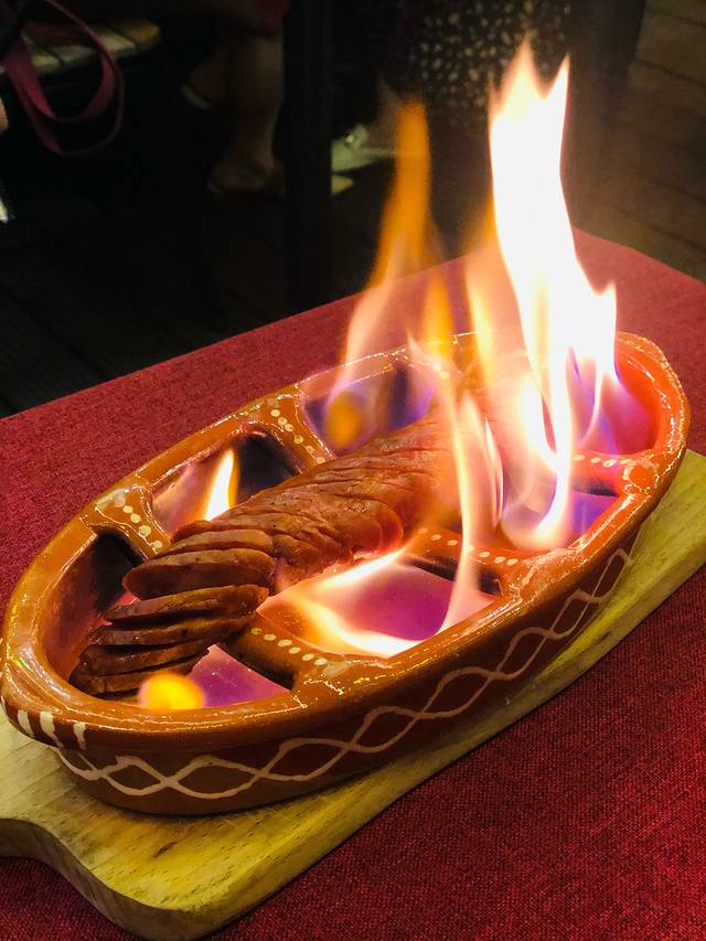 葡国香肠,形式>内容 拍照会很好看。上菜后服务员倒酒点火 - -现烧🔥 烧好会帮你切好放盘子,口味就是正常葡国香肠的味道,口淡的谨慎选择。我个人比较喜欢吃,不过吃多了也会感觉比较咸,想尝试葡国香肠的,可以点来试试,和大陆的那些熏肉香肠其实是有点类似~