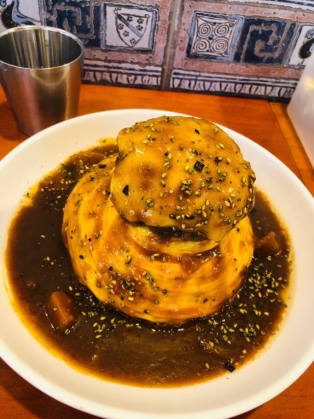 “和牛蛋包饭”要的苹果咖喱酱汁,和牛肉确实比较嫩,一切会流汁,但是配上苹果咖喱酱汁又会把和牛的调味掩盖掉... 算是无功无过的一款吧