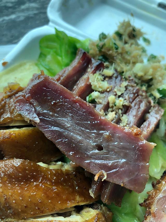 “玫瑰豉油鸡” 仔细吃会有一点淡淡的玫瑰味,鸡肉很嫩,量也很足,出品不错。不过我还是更喜欢外皮烤的焦焦的烧腊哈哈哈~