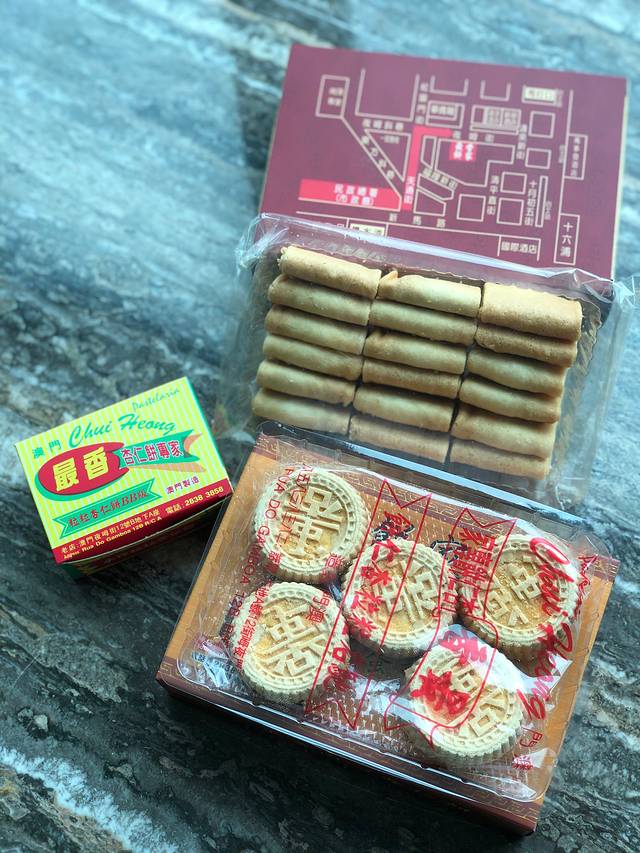 以杏仁饼闻名的“最香”也卖其他手信,我爱蛋卷,所以它家的也买来尝尝。有“长蛋卷”&“短蛋卷”之分。我更喜欢长蛋卷,它是类似大陆蛋卷的感觉,一口咬下去酥的掉渣;短蛋卷则和凤凰卷那些的外皮是一样的,薄且脆。