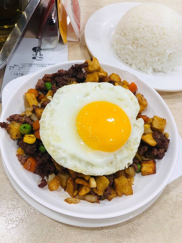 干免治牛肉饭,茶餐厅经典碟头饭。