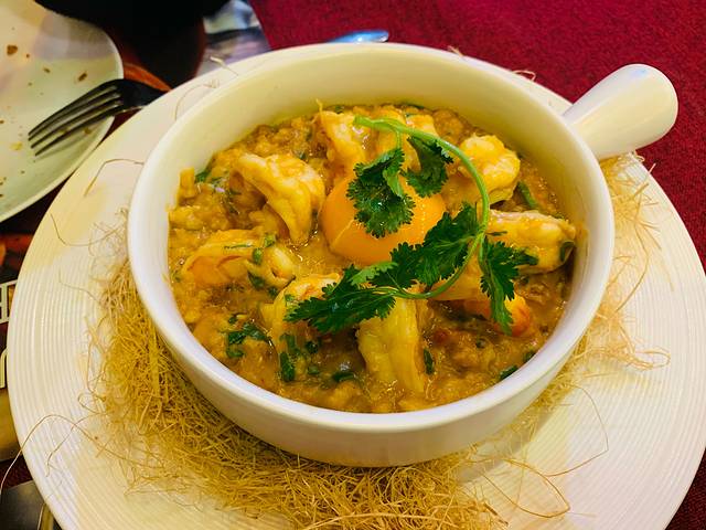 以面包糠为底,生蛋黄和虾🦐搭配,第一口吃很惊艳(是自己在家做不出来的味道,在葡国餐里也比较有特色去,其他家我没看到有类似的)。后面吃多了会稍稍有点腻,但是虾肉是真的真的好,肉质非常有弹性且没颗虾都特别的大,很顶饱很顶饱,虽然用了酱料但也能吃出虾仁🍤的鲜甜!