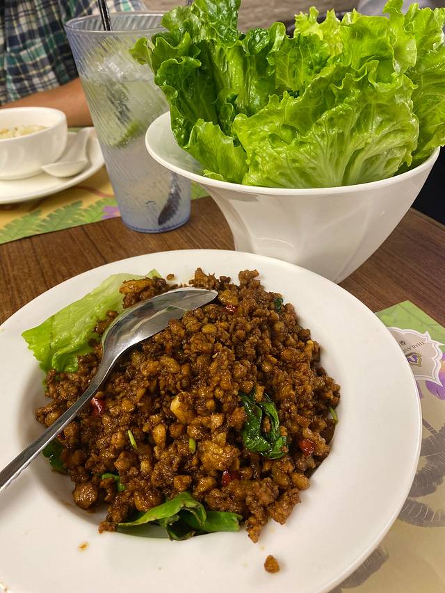 “肉碎包生菜”🥬 肉菜搭配营养均衡😋肉沫是之前没吃过的味道,个人非常喜欢,里面还有辣辣的辣椒🌶️(但不会很多,吃到辣椒的时候有辣味,直接吃肉沫并不会感觉辣哟~) 肉沫外层包裹生菜,吃起来清新不油腻👍 这个菜的味道我也不知道怎么形容,嗯~ 反正个人感觉很好吃就对啦🥰 推荐一试呦~
