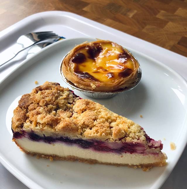 依旧是IKEA楼下的蛋糕🍰 这次买的🍇酒酿葡萄 & 蓝莓挞🫐,但是出品低于预期,酒酿葡萄下面是果冻状的,个人不太喜欢。蓝莓挞的卡仕达酱也不纯,感觉淀粉质地明显。唯一能夸的只有绿提子🍇和蓝莓很新鲜……