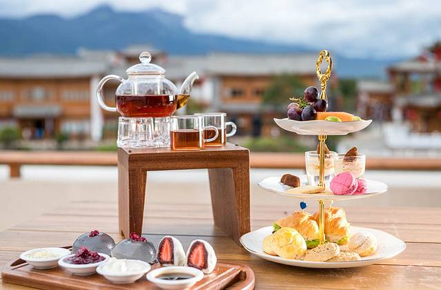 既然是度假,那么下午就应该来一壶香茗、几盘自己喜欢的点心,在一个露天的平台,一边感受着古城的文化、赏着丽江的美景,品着可口的点心,与三五好友慢慢的聊着那些令人难忘又快乐的往事,时光无比的柔软而缓慢。